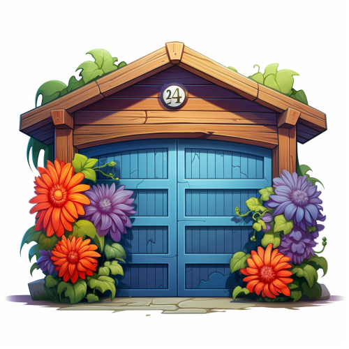 Garage Doors, vector illustration, art print, Cartoon style, chrysanthemum, logo, Pixar style, white background, , 3d, vibrant colors , Disney