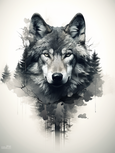 Double exposure wolf photomontage