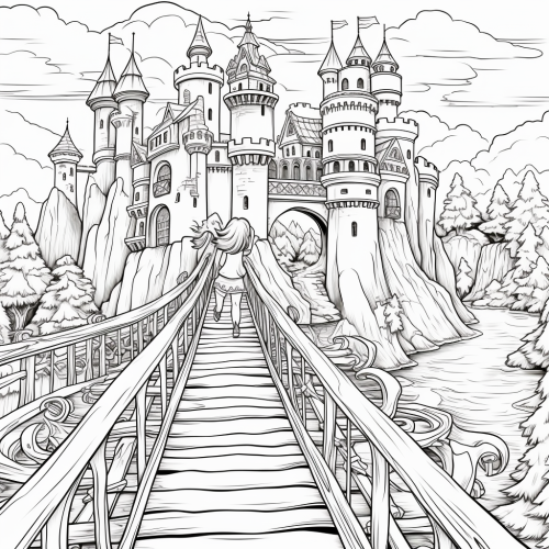 "Create a mystery coloring page featuring a magical castle with enchanted creatures and magical objects. The image should be divided into numbered sections, each corresponding to a specific color. The final image should reveal a detailed and whimsical fantasy scene. Make sure the design is intricate and engaging for a fun coloring experience. No specific characters or elements from copyrighted franchises."