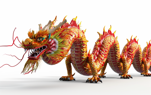 The 2024 Dragon Year IP cartoon dragon, minimalist, white background, cute, wearing Chinese China-Chic traditional clothing, orange and red tones, happy New Year, flat style, white background, masterpiece, 32k, ultra-high definition, best quality,