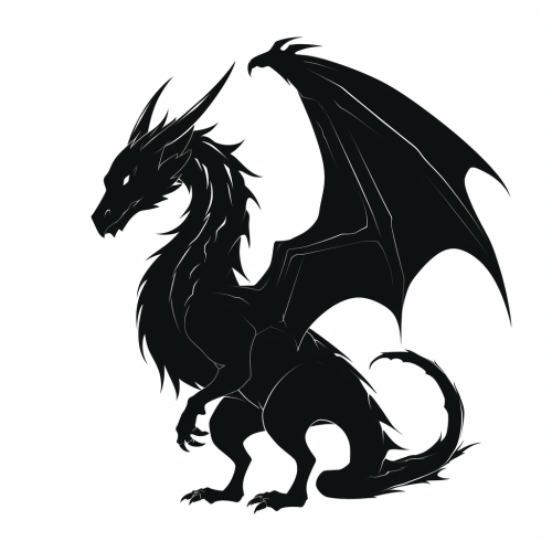 fantasy dragon black silhouette, dnd styled dragon, no background, black on white silhouette