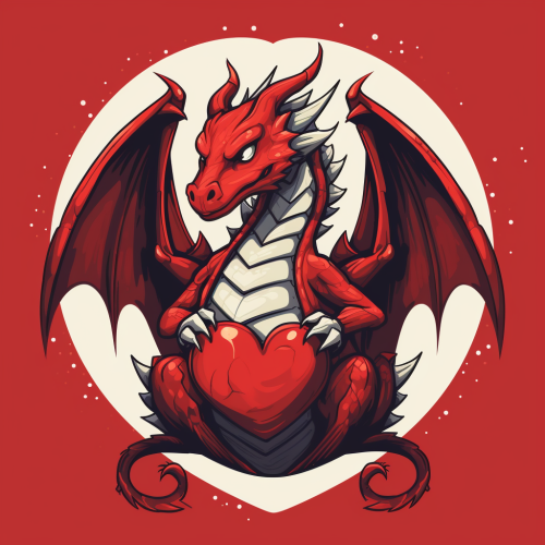 A cartoon-style Chinese dragon in red, white, and gold colors, with an athletic flair, wearing VR goggles on its head, posing as a model.