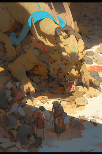 angry dragon is sitting on the chest of gold, wings on his back, looking straight to the camera , in the art style by Terry Dodson, --no human. --ar 9:16 --s 250