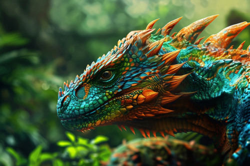 a very high detailed unique caustic dragon in its protecting its habitat, bright vibrant colors, 4k, sharp, vector artwork --ar 3:2 --v 6.0