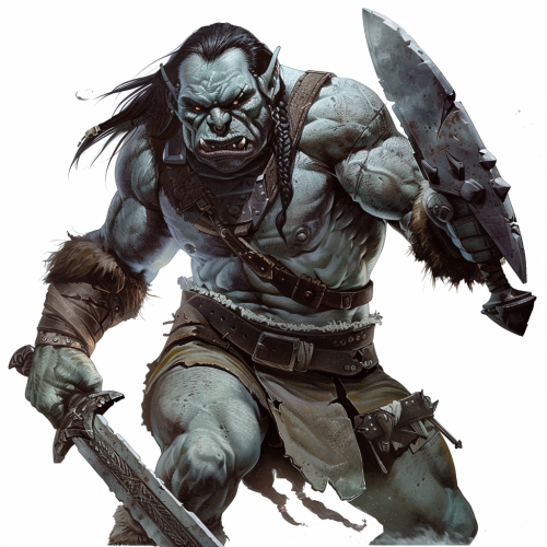 a 2D cartoon video game character, a powerful barbarian warrior with a great axe. Their form is hulking and intimidating even through the soft line work. The art style is clean with thick lines especially the outline.