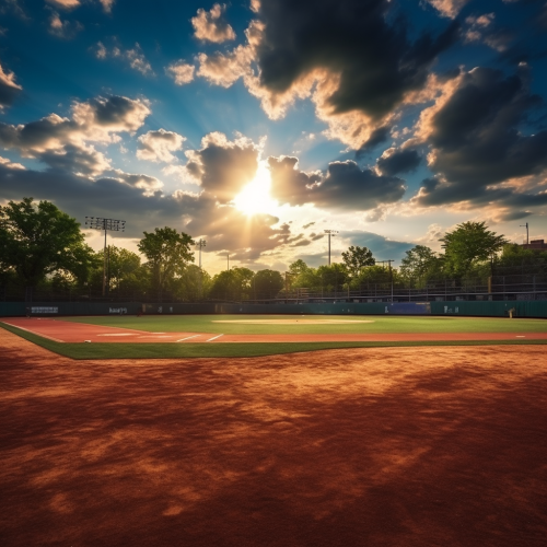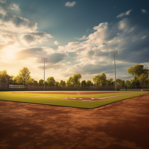 a cinematic photo of a high school baseball outfield, dramatic, late afternoon, golden hour--ar 16:9