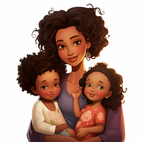 simple coloring page, african amerian woman, teenager , ponytail afro, white background, bold lines, simple lines, floraL background, for childs coloring page. --ar 2:3