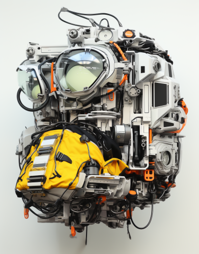 grey long fur cat wearing black and gold leather armor, dark surrealism, hiden objects like mouse and lazer pointer and string --ar 14:18 --s 300 --c 100