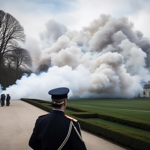 un archange sortant d'un nuage de fumée, en arrière plan un champ de bataille militaire. --v 5.0