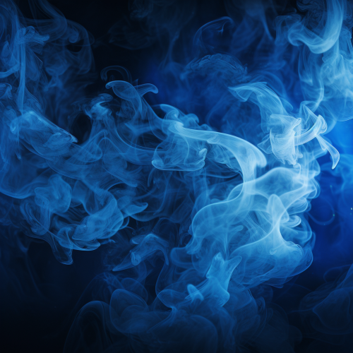 A black man with a thick beard and close cut, fine silky hair. He is wearing multiple diamond-studded chains around his neck exhaling light smoke from his mouth. The smoke is GENTLY swirling, exposing his handsome face. His DARK skin is adorned with intricate tattoos. The lighting is dramatic, highlighting his facial features and the textures of his tattoos and jewelry.