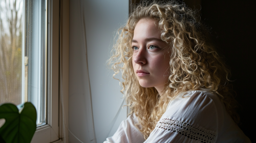 Create an intricate illustration in Edward Gorey’s signature style, depicting a solitary woman with flowing, dark hair, standing against the backdrop of a grand, gothic window. Use meticulous cross-hatching to emphasize the shadows and textures in her lace-adorned dress, capturing the delicate yet intricate patterns. The woman’s posture should convey a quiet stillness, her expression emotionless and detached, evoking a subtle air of melancholy and mystery. The stained-glass window behind her should feature abstract and symbolic motifs, such as clock faces, spiraling patterns, and ghostly birds, suggesting the passage of time or themes of isolation. Each pane of the stained glass should be rendered with careful linework, emphasizing both structure and fragility, while the interplay of light and shadow adds depth to the scene. Use negative space intentionally, leaving areas unfilled to heighten the sense of emptiness and tension that permeates the scene. The overall composition should feel hauntingly elegant, where the ornate lacework of the woman’s dress contrasts with the mechanical precision of the stained-glass background. Let the gothic elements subtly allude to themes of longing and detachment, capturing the eerie beauty and narrative ambiguity typical of Gorey’s work.