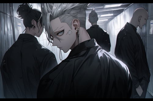 anime episode dark shot, [mid twenties tall male anime protagonist with a mid-long white haired cut hairstyle] , wearing [lightweight classic japanese outfit], in the art style of jujutsu kaisen, art by Gege Akutami, full body shot, , rough-edged 2d animation, thomas blackshear, dreamlike and creepy scenario, lit kid --ar 3:2 --niji 5