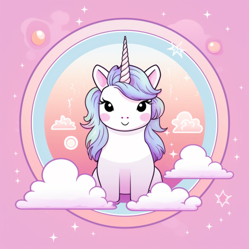 cute kawaii unicorn 70's style flat 2d illustration in pastel colors outline manga styleand dreamy scene