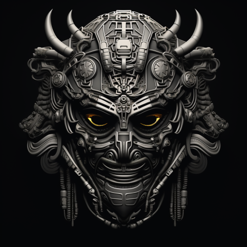 japanese cyberpunk mask very detailed manga style monochrome, black background