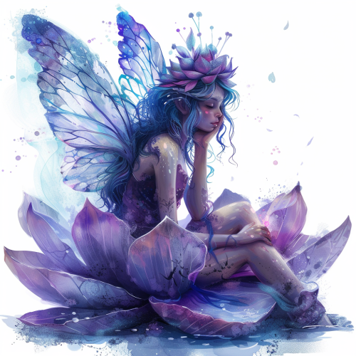 A Fairy Runewright on a medieval street. She has translucent wings and is holding a magic quill. She is inscribing glowing runes onto a small mechanical construct dog made of metal and gears. The runes shimmer with light as the dog slowly comes to life. Faintly glowing runes in the air. The mood is eerie and etherial. Dark Fantasy setting. Watercolor art style with soft washes of color and fluid details. --ar 3:7