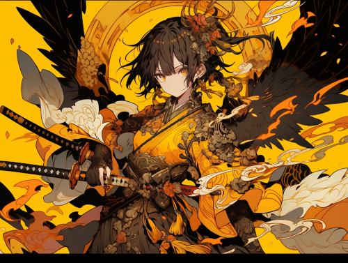 the guardian of secrets wallpaper, in the style of delicate shading, anime art, dark white and light gold, changelingcore, vray, elaborate costumes, low-angle --ar 128:85 --niji