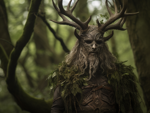 1980s Black Metal Album Cover. Lovecraftian. Large Stag with many horns. Standing In decaying forest. Liquid dripping from horns. Demonic