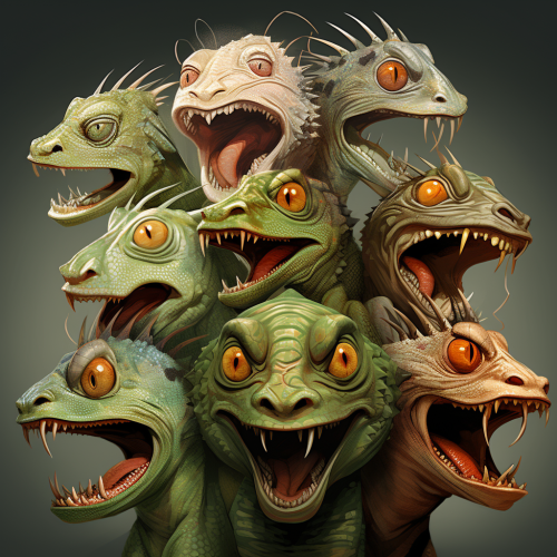 A chameleon-like creature with many faces, each expressing intense emotions. These faces are in constant flux, illustrating emotional instability.