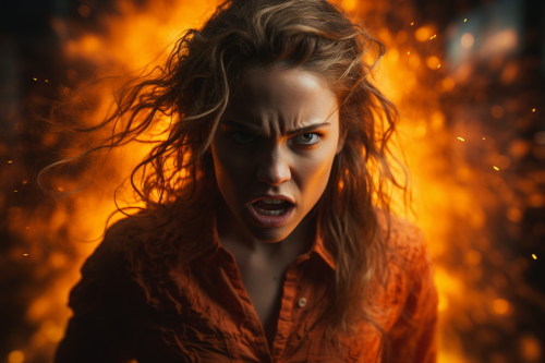 a 22 year old beautiful women from Czech Republic shot in a studio with daylight and white background, she is expressing anger in her face, cinematic orange toned lightning, shot in andre josselin style, 50mm, --ar 3:2 --s 250