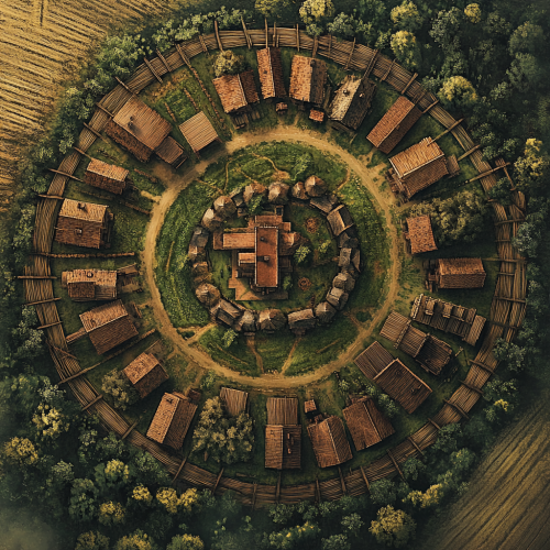a top down dungeons and dragons battle map, dusk, the town square of a village, interesting streets, it is decorated with Jack o' lanterns and straw effigies, harvest festival, dungeons and dragons map