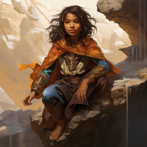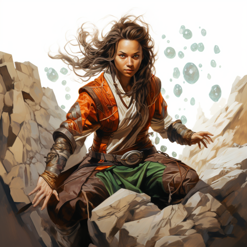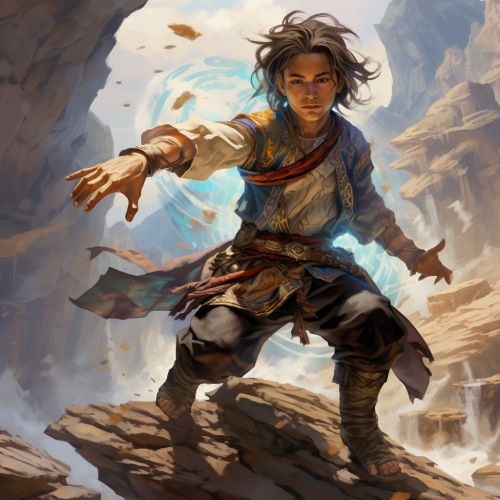 dungeons and dragons character, earthbender, levitating rocks, earthquake, soil, indonesian features, flowing medium length hair, adolescent, epic, batik clothing, hyperrealism
