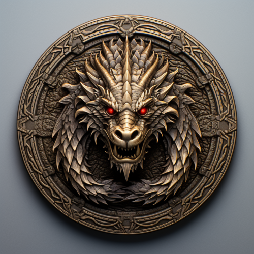 Dungeon & dragons portrait of a dragon and claws in a circular token high detail, 3/4 view, grim, simple border --v 5.2 --ar 1:1
