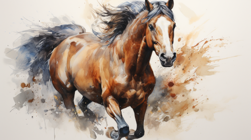 Create an image of a horse with its front leg raised, drawn in a Chinese brush painting style, capturing the elegance and grace of the horse --ar 16:9 --s 500