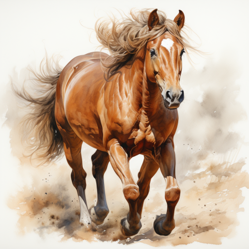Create a simple image of a horse with its front leg raised, drawn in a Chinese brush painting style --s 750