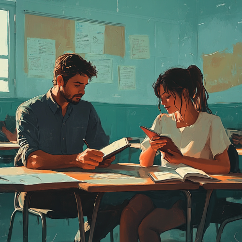 español inglés francés Gif de hombre y mujer en un aula y como tratando de participar donde el el hombre este investigando y la mujer este haciendo otra cosa en el aula por el patriarcado 165 / 5.000 Gif of a man and a woman in a classroom and how they are trying to participate where the man is investigating and the woman is doing something else in the classroom because of the patriarchy --v 6.1