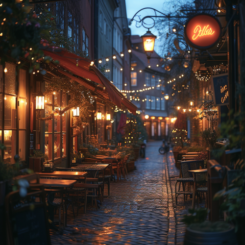 summer night in Copenhagen street, photorealistic, hyperrealistic, depth of field, photography, Canon EOS 5D Mark IV DSLR camera, Cinematic, iso 6400, photography, --q 0.5 --v 6.0 --s 750