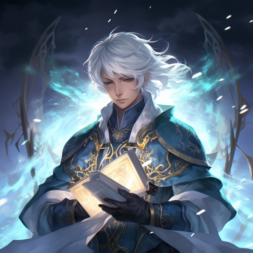 Male Cleric, handsome man with white medium hair, looking at viewer, in chibi style