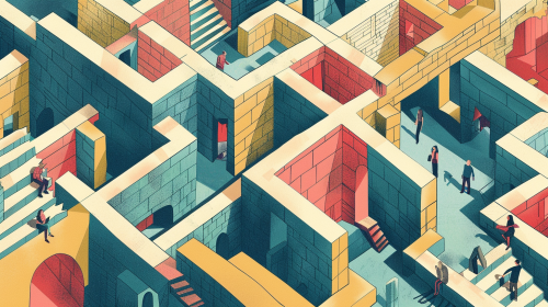 an axonometric maze made up of words, phrases, idions, and sayings, --ar 16:9