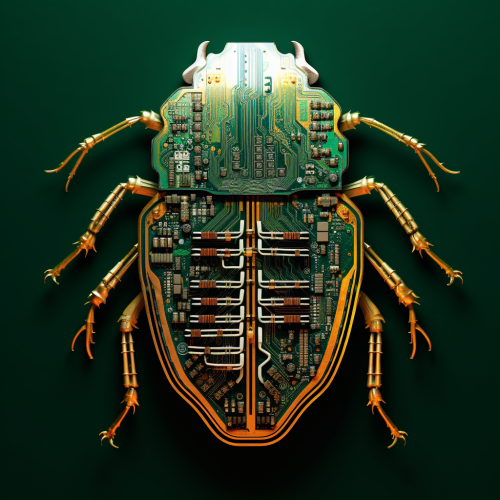 a trilobyte slowly dissolving into a printed circuit board from head to tail