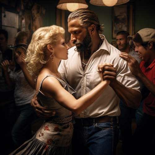 couple dancing salsa, with tropical clothes, white tone environment, daylight, real texture, real person, ultra realistic details, with tropical environment, dark black tone environment, close up shot, 8k, cinematic, color grading, real photo, cinematic, color grading, real photo, cinematic, color grading, real photo, This photo was taken using Fujifilm Superia X-TRA 400 film. shot on a film camera, grainy, high contrast, Kodak colors, The photography is in the style of Architectural Digest. in the 80s decor magazine style, 8K. --ar 3:4 --v 6.0 --style raw