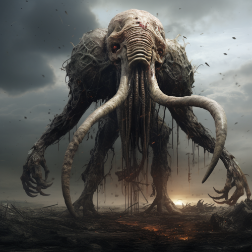 faceless horror elephant with the teeth of leeches, made of leeches, lovecraftian horror, hyperrealistic, wasteland setting, fantasy concept art, grimdark style --v 5.2 --upbeta