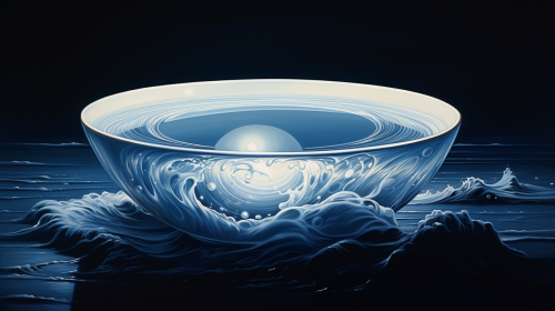 If humans could see in dimensions then they would realize the earth is just flat, so watch the moon it floats in a soup. brushworks, oil, --ar 16:9
