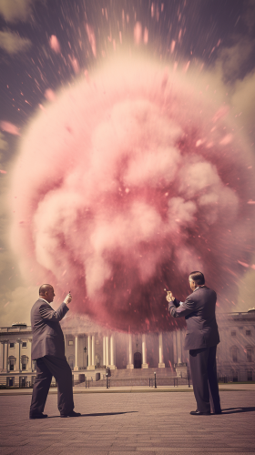 hyper realistic eye catching picture of a communist bear as a politician, in a suit, with a badge with an hammer and a sickle, above a crowd with soviet union flags, the atmosphere is epic --style raw