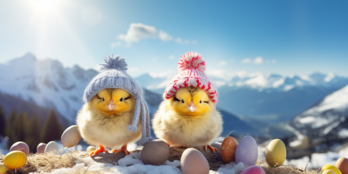 A huge easter egg, text: "GOD PÃ…SKE" , all togheter with easter lenten rice --ar 16:9 --s 1000 --v 6.0