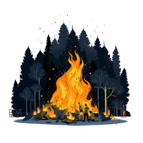 an illustration of a bonfire on white background, in the style of minimalist illustrator, dark yellow and dark navy, richard scarry, conrad roset, eric carle, animated gifs, exaggerated proportions