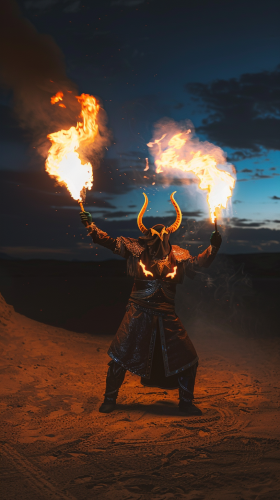 cinematic, portrait photography, An Ifrit casting a devastating fire spell, the magic illuminating the night, emphasizing its role as a fearsome entity in Middle Eastern mythology --ar 9:16 --s 0 --v 6.0 --style raw