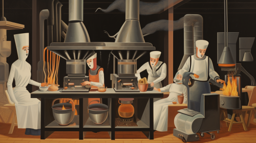 fat rednecks eating food chicken and covered in grease, in the style of the Sistine Chapel