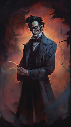 1980s dark fantasy book illustration Frazette-art style of Abe Lincoln the vampire slayer - --ar 9:16 --v 5.0