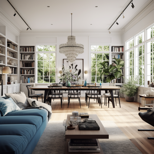 Hyper realistic living room which gives vibe of couple living here who are into trekking, bollywood dancing and we are interested in next generation technology and are eager to go to mars and i believe & manifest in cosmic energies and connections, also with nature. This is living room with dimension as 10 * 4 meters. It is a brightly lit, positive, cozy space with vibrant colors