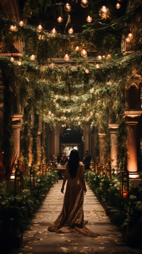 Diwali celebration during a wedding inside a city surrounded by dense greenery, --ar 9:16