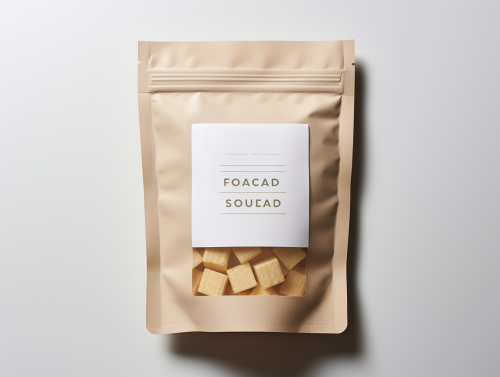 product photography, close up of blank Eco-friendly square food package with label on the table, soft shadow, detail, high quality, high resolution --ar 4:3