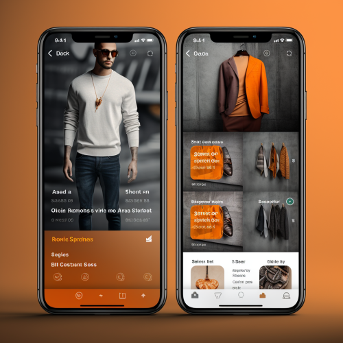 design a shopping mobile application with fashion products, mockup the screens in iphone 14, 8k