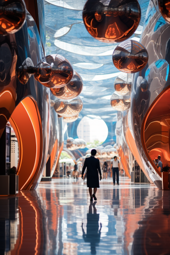 An image depicting a futuristic vision of luxury shopping in India. fujifilm --style raw --ar 2:3