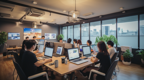 Create a sophisticated and inspiring image that embodies the essence of 'The AI-Leveraged Trainer' course. The visual should depict a modern, dynamic learning environment where artificial intelligence is at the heart of educational innovation. Imagine a central figure, the trainer, surrounded by a diverse group of learners engaged in an interactive, AI-enhanced training session. The setting is a futuristic classroom or workshop space filled with advanced technology: interactive digital screens, AI interfaces, and holographic projections of data and creative content. The atmosphere is one of discovery and engagement, with visible elements of AI, like neural network patterns or digital code, subtly integrated into the background, symbolizing the unlocking of creativity and the enhancement of productivity. Around the room, smaller breakout areas show learners exploring their interests with the help of AI, customizing their learning paths. The lighting should be vibrant, highlighting the innovative tools and enthusiastic faces of the learners, capturing a moment of revelation or deep engagement. The overall image should convey a sense of curiosity, creativity, and futuristic learning, inviting viewers into a world where AI empowers trainers and learners alike to achieve their full potential.