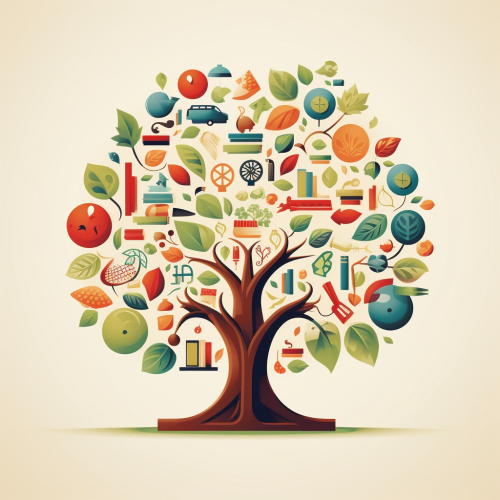 "Create a logo featuring a tree with leaves made of various educational and vocational icons." --v 5.2