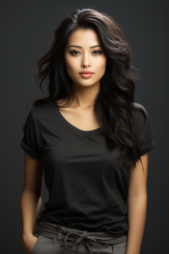 asian girl,black straight hair,professional id photos with solid gray background,white casual short sleeves,dynamic pose, sweet, front view, best quality, super highly detailed, high quality, high resolution, minimalistic, nikon, canon; --ar 2:3 --v 5.2 --s 500